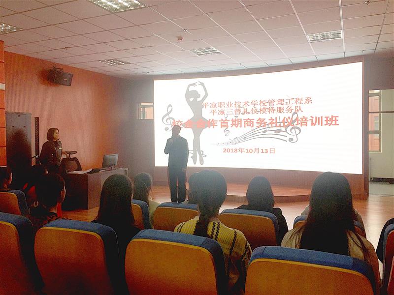 平?jīng)鋈婀径Y儀模特服務(wù)隊和平?jīng)黾夹g(shù)學(xué)院管理工程系建立大學(xué)生商務(wù)禮儀社會實踐校企合作平臺
